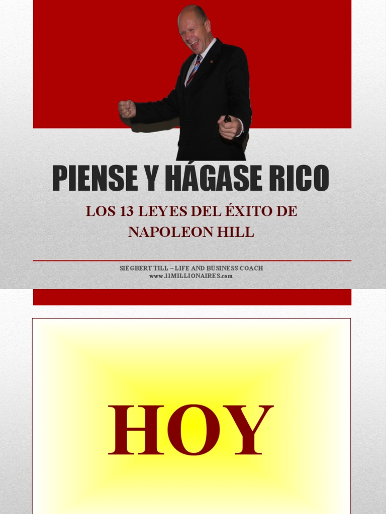 Todas las personas que trabajan en el equipo están capacitadas 100% por el movimiento piense y hágase rico: 'think and grow rich' es un libro que recopila los pasos que han seguido innumerables millonarios y. Durante cada capítulo del libro, es mencionado al menos una vez y, según hill, lo sabremos identificar si estamos preparados para. ¡piense y hágase rico ahora es una película! Think and grow rich autor:napoleon hill año de primera publicación: