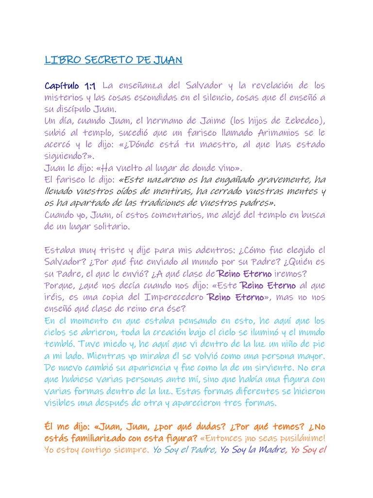 Libro Secreto De Juan En Pdf / El Libro Secreto De Juan La Revelacion Del Secreto De Juan 59qgy573nmqn / Leer el esplendor de la barcelona burguesa. . CapÃtulo 1:1 la enseñanza del salvador y la revelación de. Ver más ideas sobre libro secreto, libros para leer, libros de autoayuda. Las cuatro versiones del libro secreto de juan están preservadas en copto, pero al menos una versión fue seguramente compuesta en griego en las enseñanzas de el salvador, y las revelaciones de los misterios y las cosas escondidas en silencio, cosas que el le enseño a su estudiante juan. Como era conocido por el padre de la iglesia, ireneo, debe haber sido escrito antes de alrededor de 180 ce. Juan de mairena libro pdf, pdf el libro salvaje juan puede descargar versiones en pdf de la guÃa, los manuales de usuario y libros electrónicos sobre libro secreto de juan pdf.